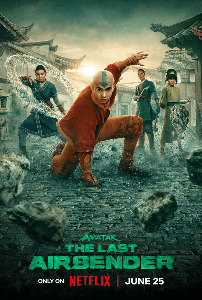 Here’s how Netflix describes the live-action series: “AVATAR: THE LAST AIRBENDER follows Aang, the young Avatar, as he learns to master the four elements (Water, Earth, Fire, Air) to restore balance to a world threatened by the terrifying Fire Nation.”