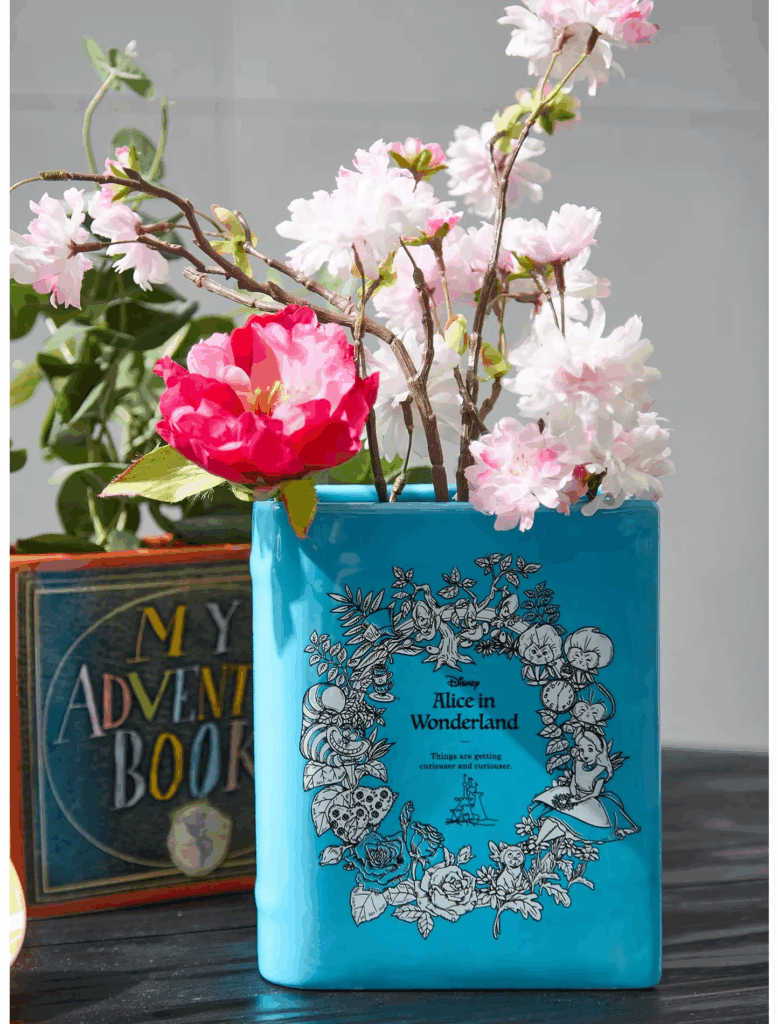 Talking flowers? BoxLunch has you covered: “Designed like an Alice in Wonderland book, this planter is perfect for your talking flowers!”