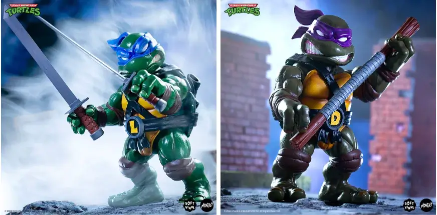 This release comes just a few weeks after Mondo also released the soft vinyl figures of Leonardo and Donatello. By the looks of the figures, they are inspired by the 90s era of TMNT. According to Mondo, they stand at about eight inches tall. They feature articulated limbs, weapons, and accessories that you can pose with the figures.