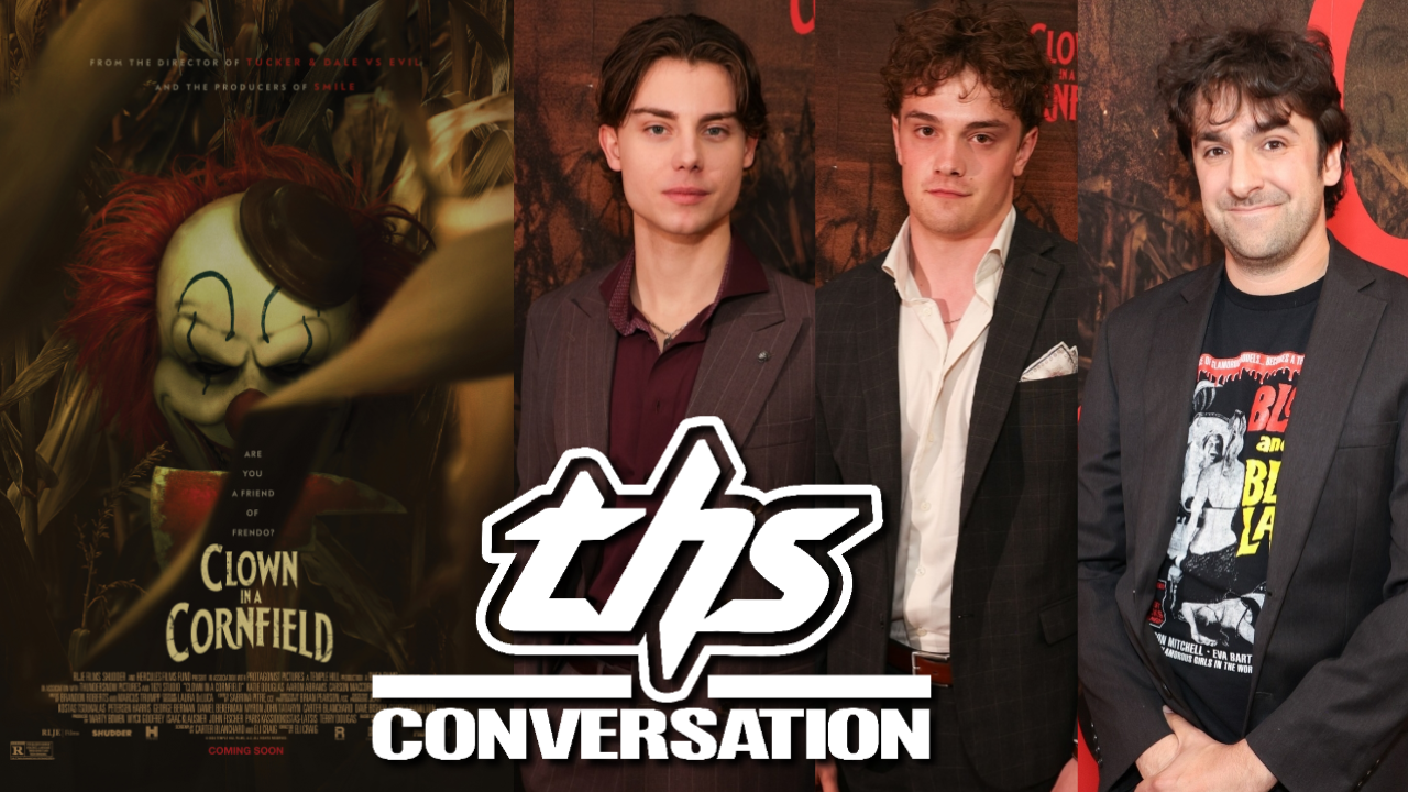It’s a little over halfway to Halloween, so what better time to release a movie about clowns? Clown in a Cornfield is a gory little thriller that fits perfectly in the early-summer lineup, and we were fortunate enough to be able to speak to stars Carson MacCormac and Vincent Muller, as well as author Adam Cesare, at the New York premiere of the film.