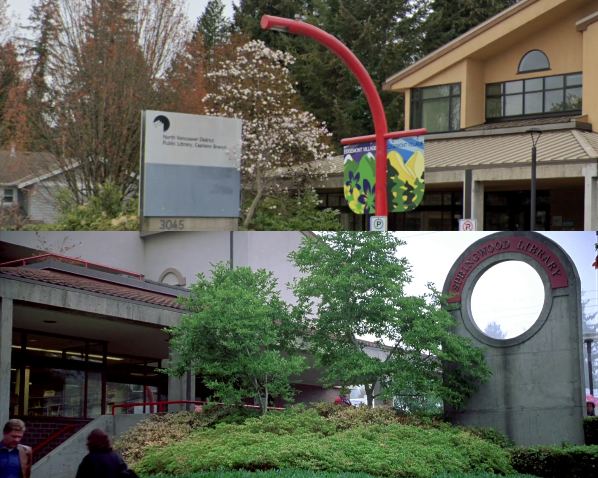 Next up, Will and Mark find their way to a library which is in fact the North Vancouver District Public Library (Capilano Branch) located at 3045 Highland Blvd, North Vancouver, BC. Despite being the site of filming, there’s very little carrying over as the library has undergone a myriad of renovations.