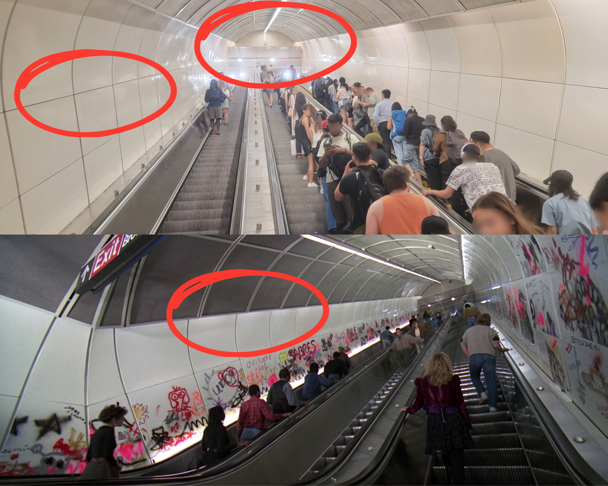 Inside the station itself features an escalator that Rennie and Sean run down to escape Jason and that escalator is still there. The panelling on the sides and the ceiling remain intact; albeit, with a lot less graffiti