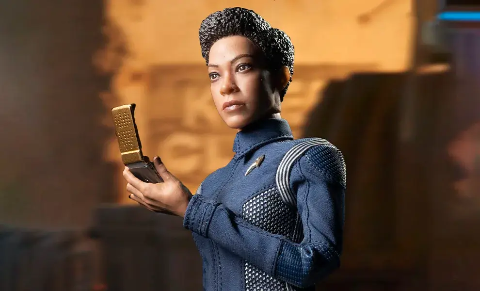 Always dedicated to Starfleet, Michael was reinstated to Commander at the end of the first season of Star Trek: Discovery. This sixth scale figure re-creates the character in detail. Standing 11 inches tall, she wears the standard duty uniform of the Discovery crew with silver detailing throughout. She is equipped with the latest in Starfleet technology with complex and detailed accessories that were created using the actual assets used to create the props for the show. The original portrait sculpt of Sonequa Martin-Green has an authentic, hand-painted likeness.