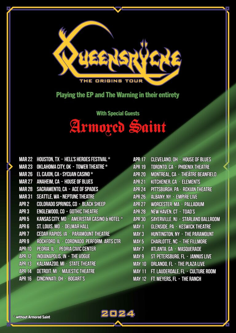 “We’re super stoked to be going back out on the road with our good friends Queensrÿche! We’ve done several tours in the past and we always have a great time being on the road with these great musicians and friends! We’re looking forward to playing some cities we’ve never played before and also, we’ll be playing some of these dates as headliners! We’ll be pulling out some deep cuts and playing an extended set so we hope to see you come out to all of these shows! We’ve been busy writing new music so keep your ears peeled in the near future for some new SAINT! Until then, we’ll see you up front!”