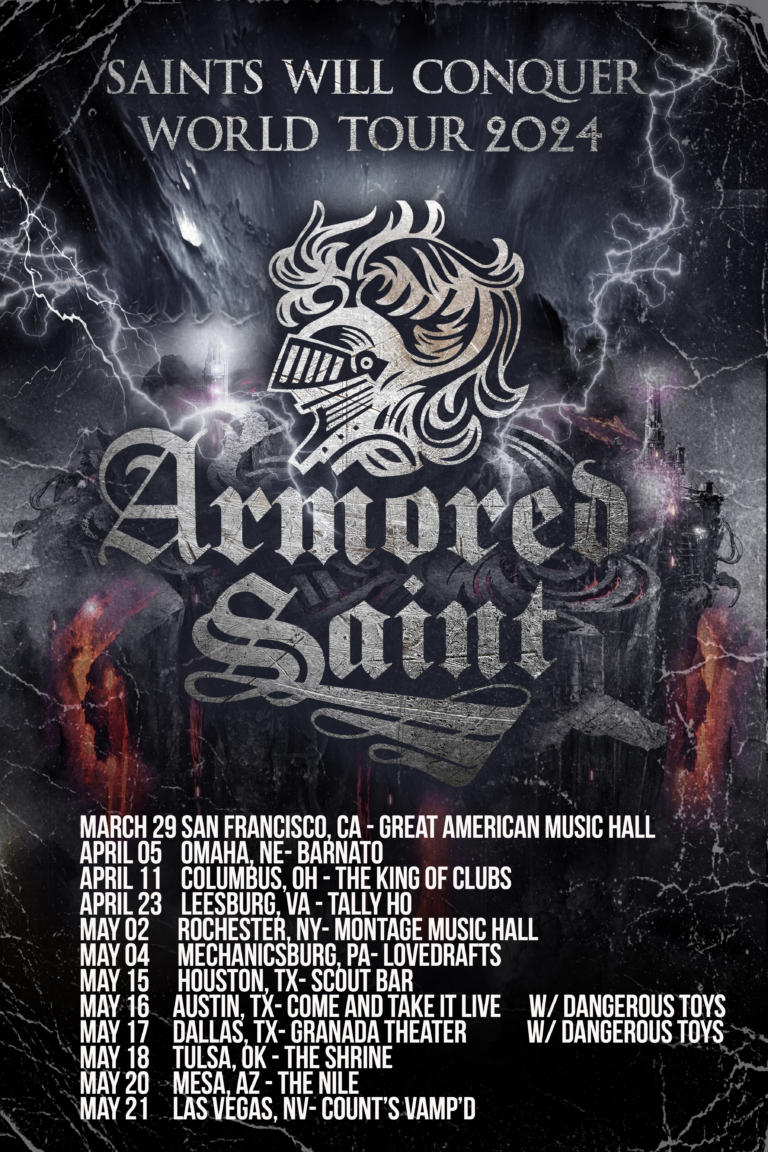 Armored Saint are busy laying down tracks for their upcoming album, but in the mean time, they’re heading out on tour with Queensryche for a US tour. The tour commences in Anaheim, CA on March 27th and heads across the country up until May 21st in Las Vegas.