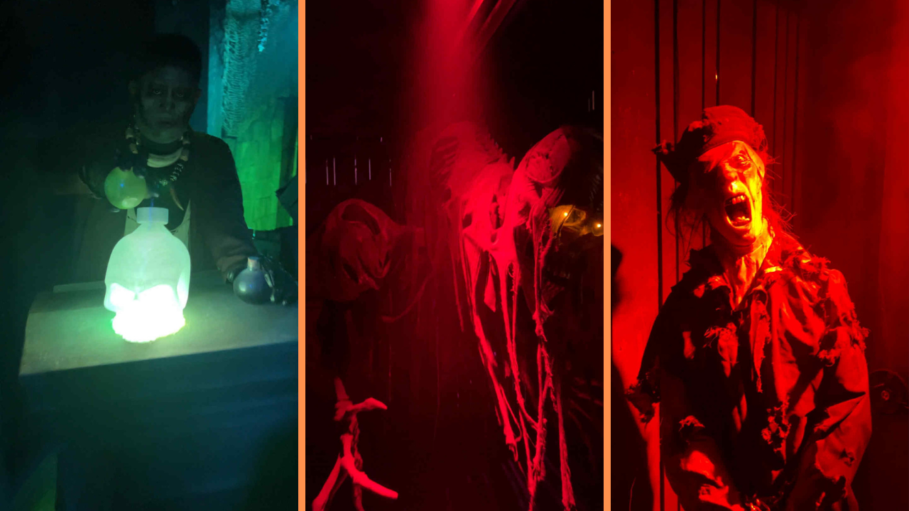 Voodoo: The Queen’s Curse is the newest maze for this year and it’s got the most ambiance and atmosphere out of the three mazes that aren’t on the ship. This one was hard to get on camera because it’s filled with fog and built inside to look like it’s straight out of the bayou. The Priestess is easily the coolest of the new icons for the event. She’s walking around the event, and her costume has some great details, like her staff having a bird’s nest on it. This one was a long wait, but it was somewhat worth it. We waited for an hour and fifteen minutes for this one, but it was awesome.