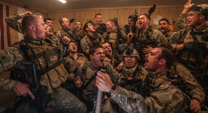 The SEAL team is the central focus of the story but they’re backed up by other Army units that come into play. This story also features two families that play a part of the narrative as well. Like I was mentioning before, the movie doesn’t open up right on combat. This isn’t Saving Private Ryan, it opens on one of the most mid-2000s things I’ve ever seen: a group of young men dancing, jumping, whooping, and absolutely loving the music video for “Call On Me” by Eric Prydz. If you don’t know that music video, it was an absolute cultural icon for people of the time. It was a rite of passage for boys and men from middle school all the way up to adulthood. That’s really the only spot of levity, and the film goes straight into a hellish depiction of war from there.