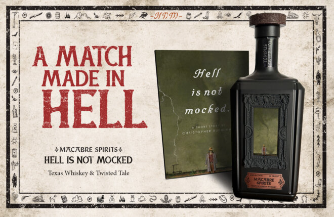 Macabre Spirits is back with a new nightmare bottle! "Hell is Not Mocked" is their second release in their line of collectible spirits that are accompanied with a story crafted exclusively for horror fans. This new release ventures into the wide-open terrors of the American frontier. With