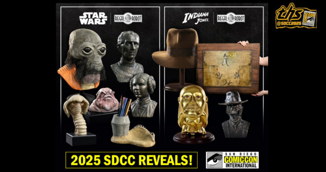 The Force was strong at San Diego Comic-Con as Regal Robot took the stage during the Lucasfilm High-End Collectibles Update Panel. Creative Director Robb De Nicola thrilled fans with the reveal of an impressive new lineup of Star Wars and Indiana Jones-inspired creations. These creations range