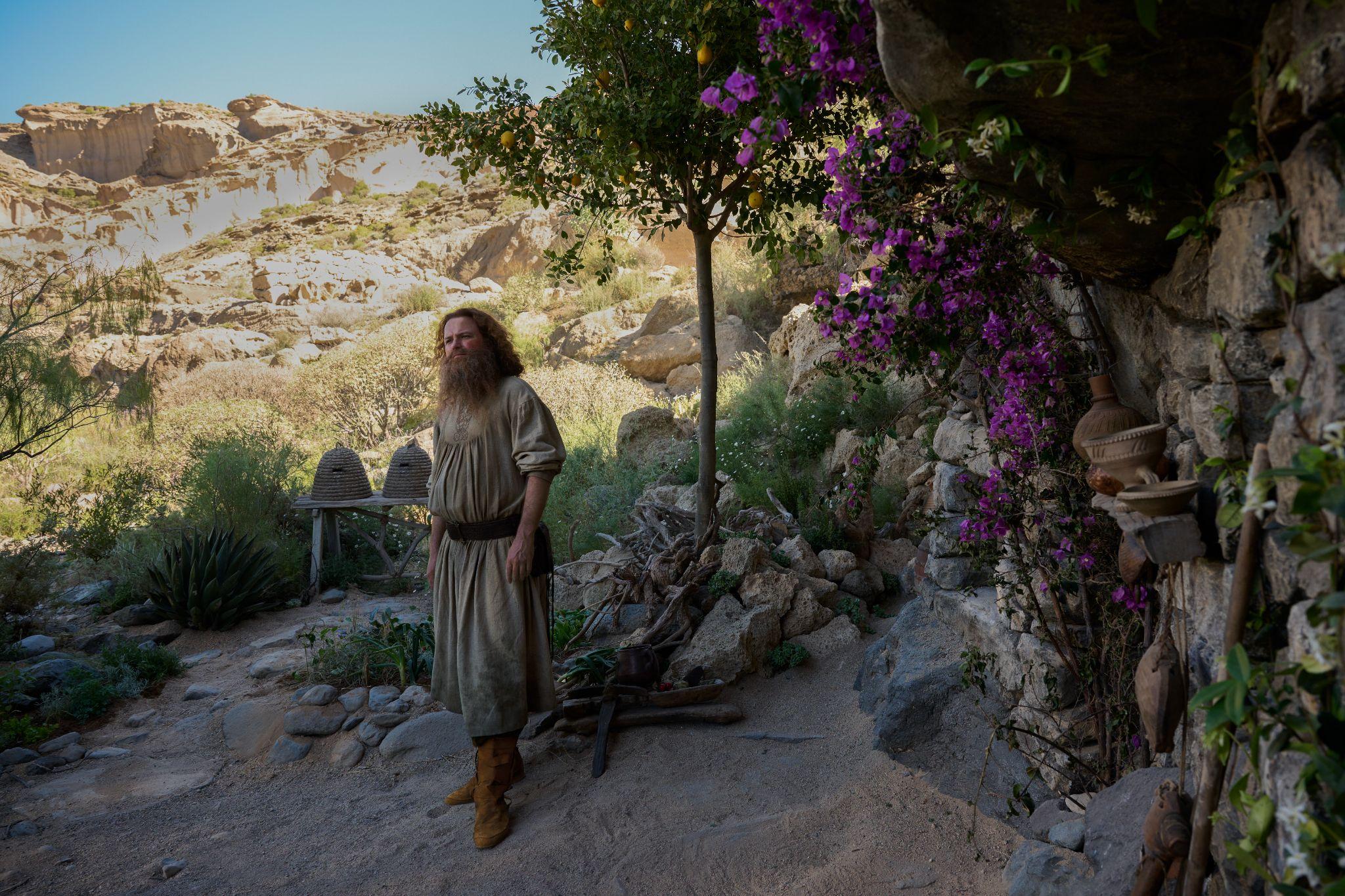 Rory Kinnear plays “Tom Bombadil” a figure of unknown origin in Tolkien’s works. He projects a timeless wisdom, often propelling characters in a direction to see things more clearly and helping them better understand the wide world around them. In the lore, he claims to be as old as Middle-earth itself, possessing wisdom far beyond the reaches of others. Essential to the spirit of discovery and of the search for meaning, Bombadil is famously clad in yellow boots, blue jacket, and a feathered hat, and prone to enigmatic expressions in singsong verse.